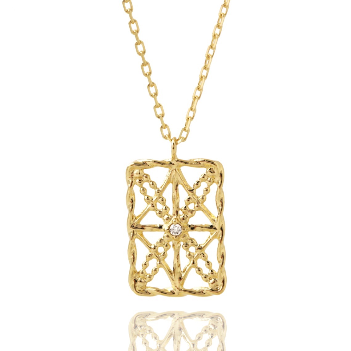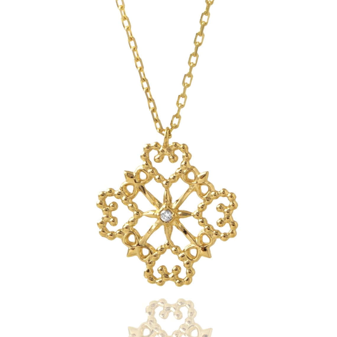 K18 European Style Lace Series Necklace - Rectangle Amulet -