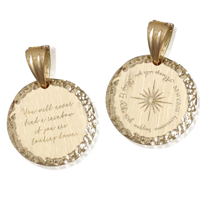 K18 Engraved coin pendant - L -