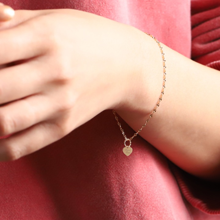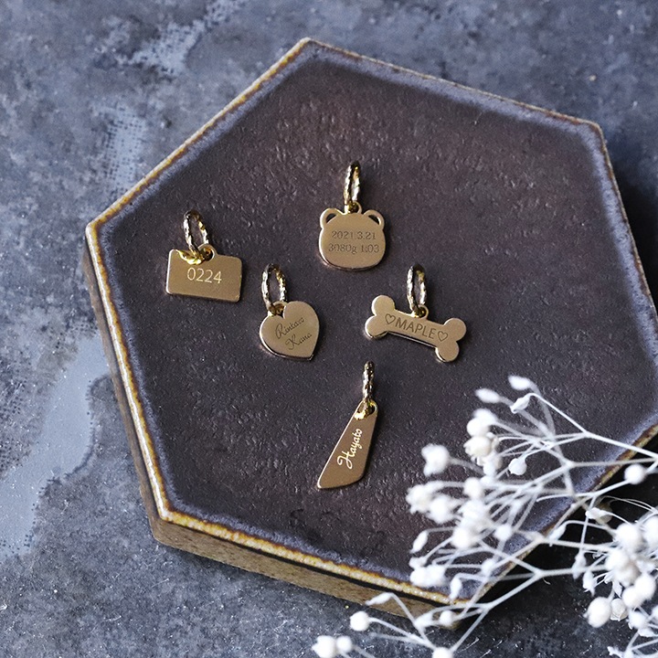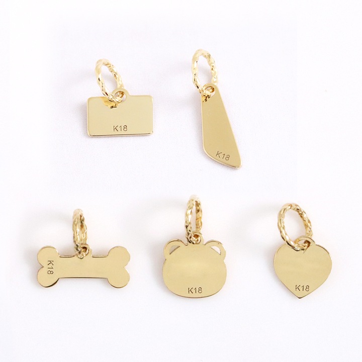 小さく可愛らしいプレートに自分だけの刻印を入れられる、18金 ペンダントトップ。