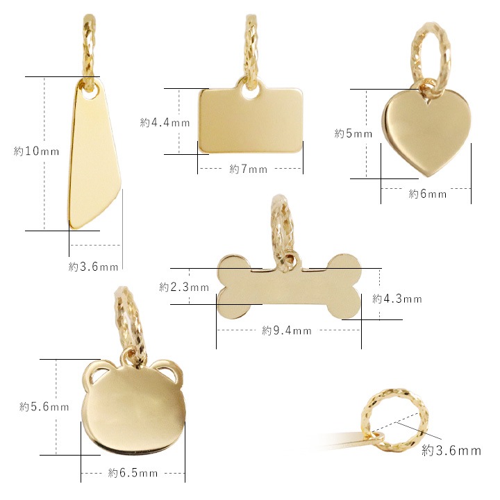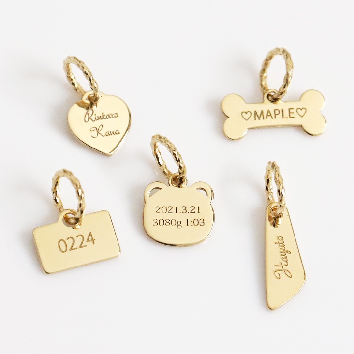 BOX・WINGのベーシックなものまで、種類豊富で幅広く選べる刻印可能なセミオーダーのk18チャームは、