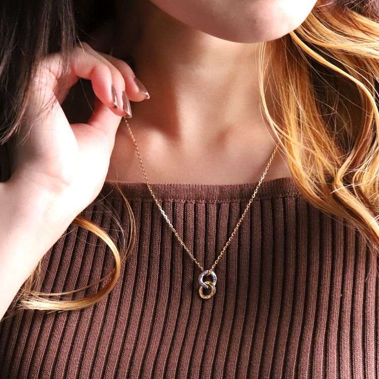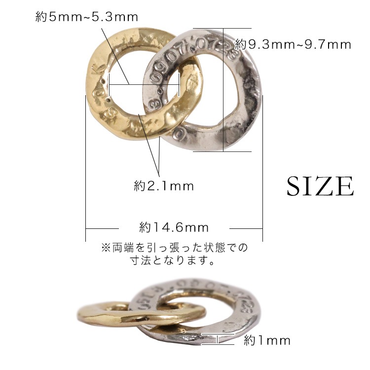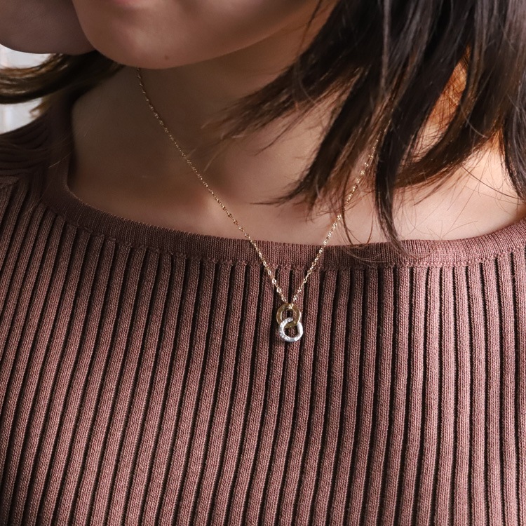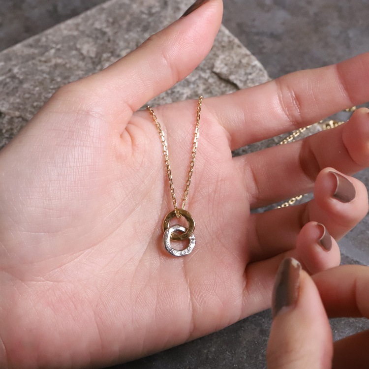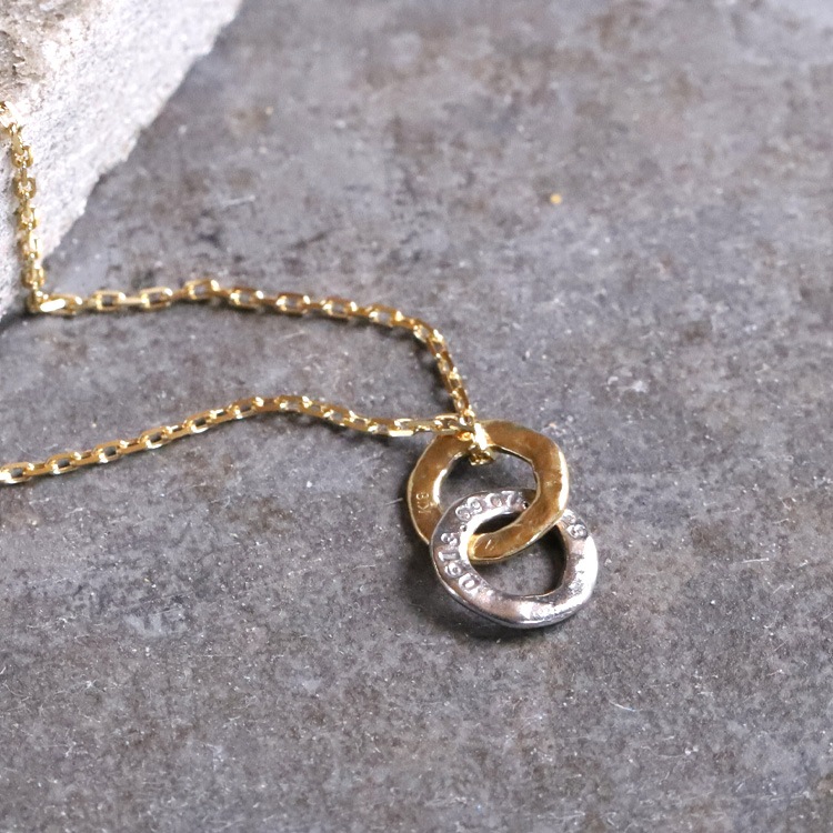 イビツで温もりあるリングをふたつ繋いだダブルリングモチーフ。