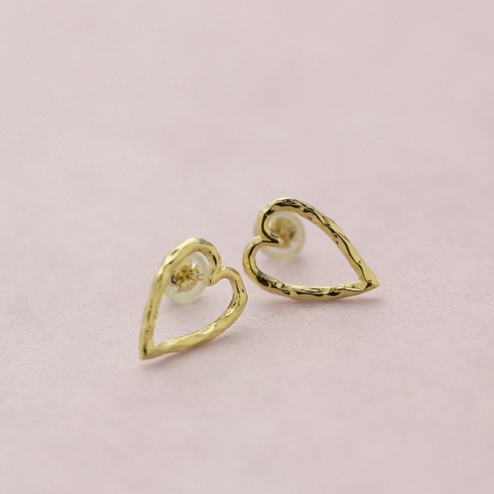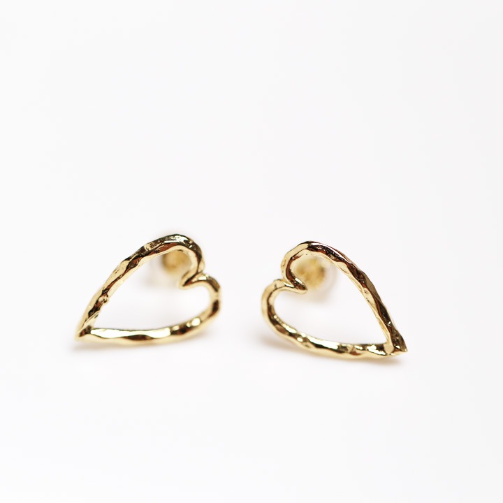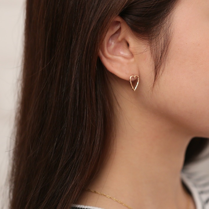 K18ゴールドの地金のみで作った、、ハートのシルエットピアス。