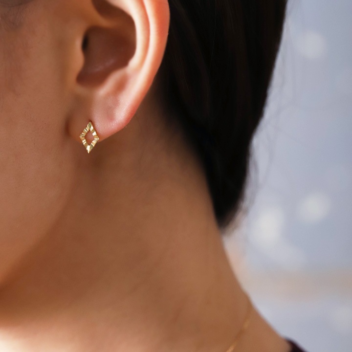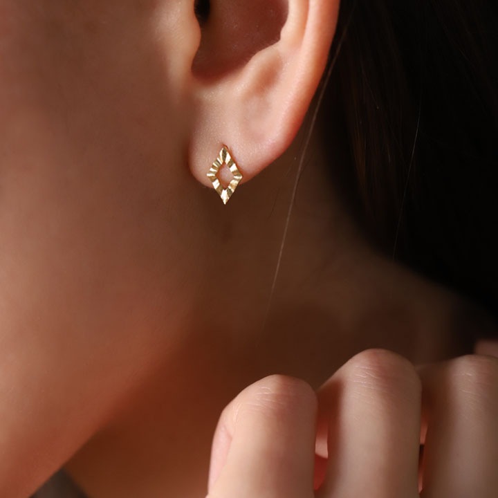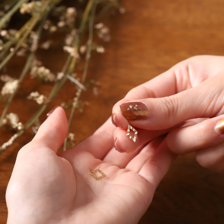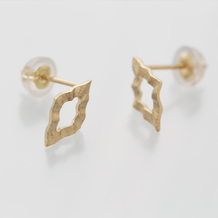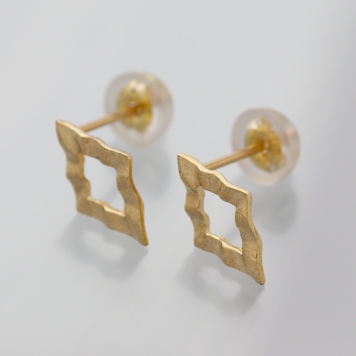 K18ゴールドの地金のみで作った、お洒落なロンバス(ひし形)ピアス。