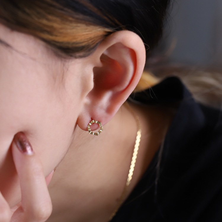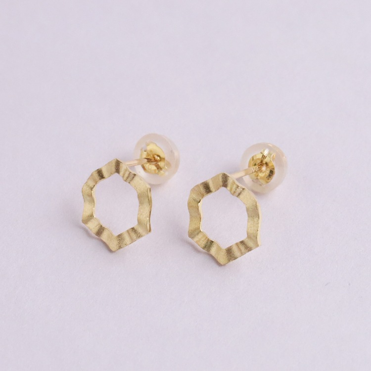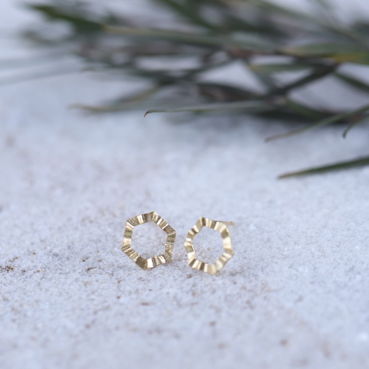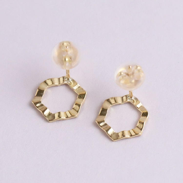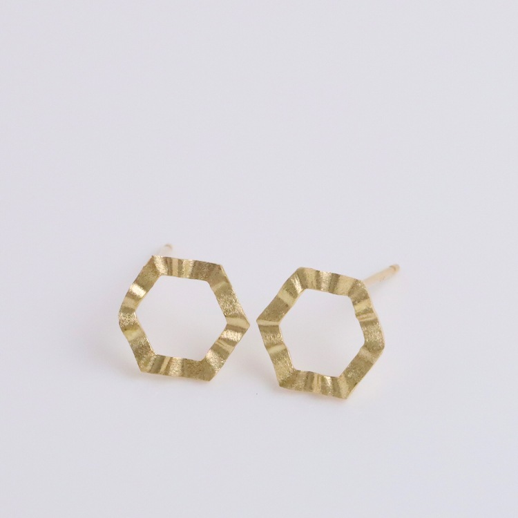 K18ゴールドの地金のみで作った、お洒落なヘキサゴン(六角形)ピアス。