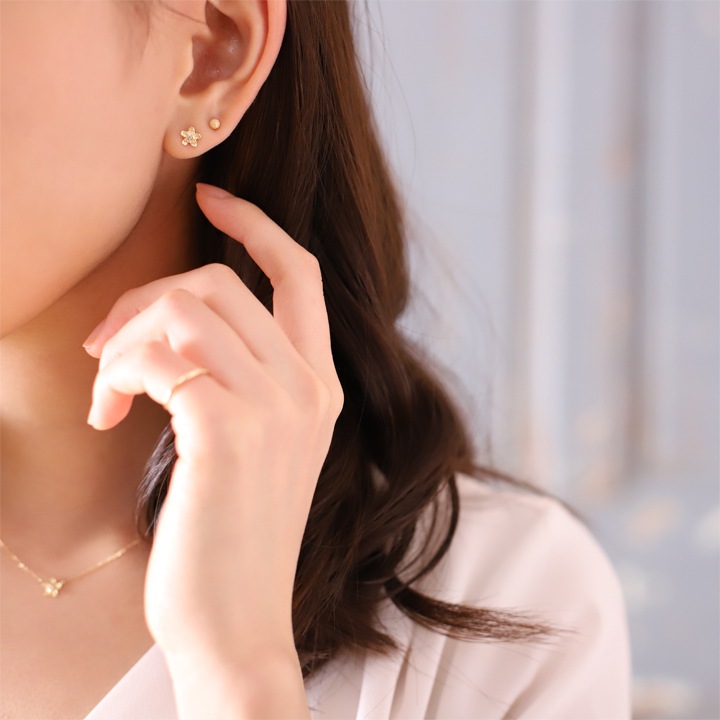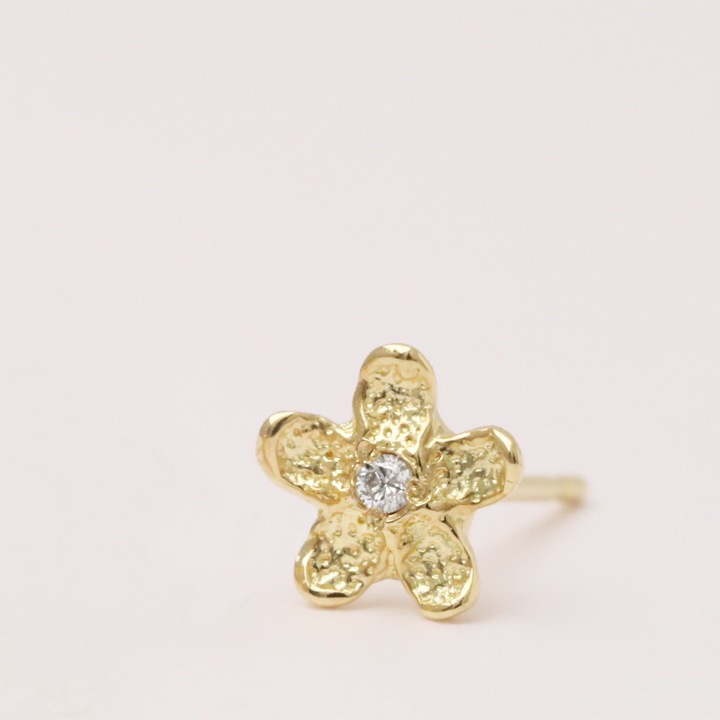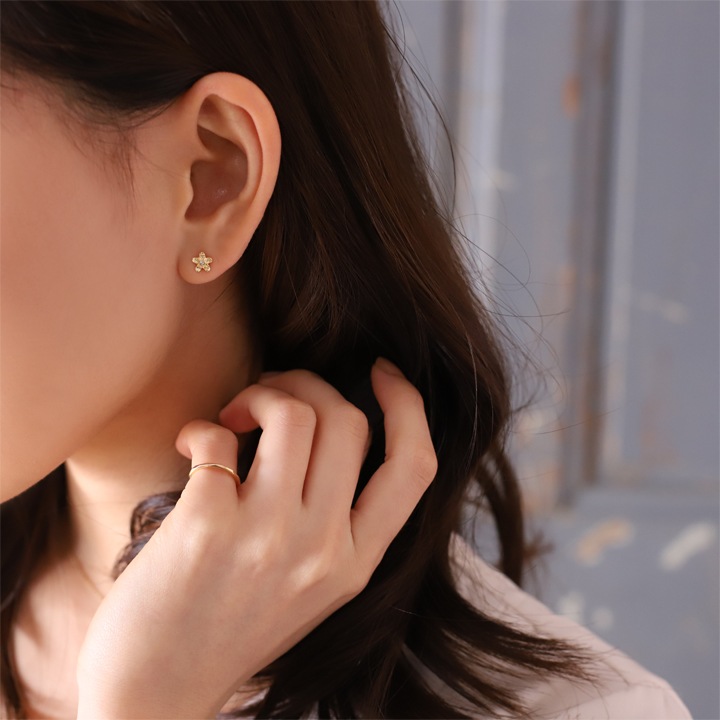 “気品” “情熱”の花言葉を持つ南国の象徴 「プルメリア」をモチーフにデザインし、着けた雰囲気は、日常のどんなシーンでもコーディネートでき、主張せずさりげなくオシャレ演出できる様、より小さく繊細に仕上げました。