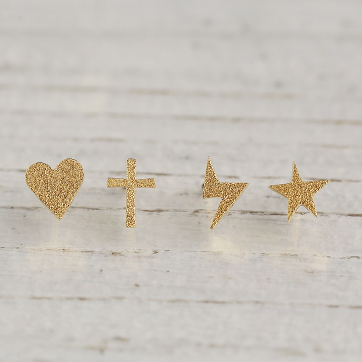遊び心のある4種類のモチーフから選べるピアス。スターダスト加工が目を引きます。