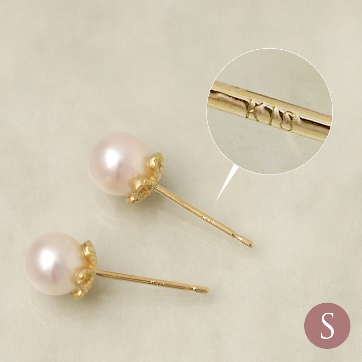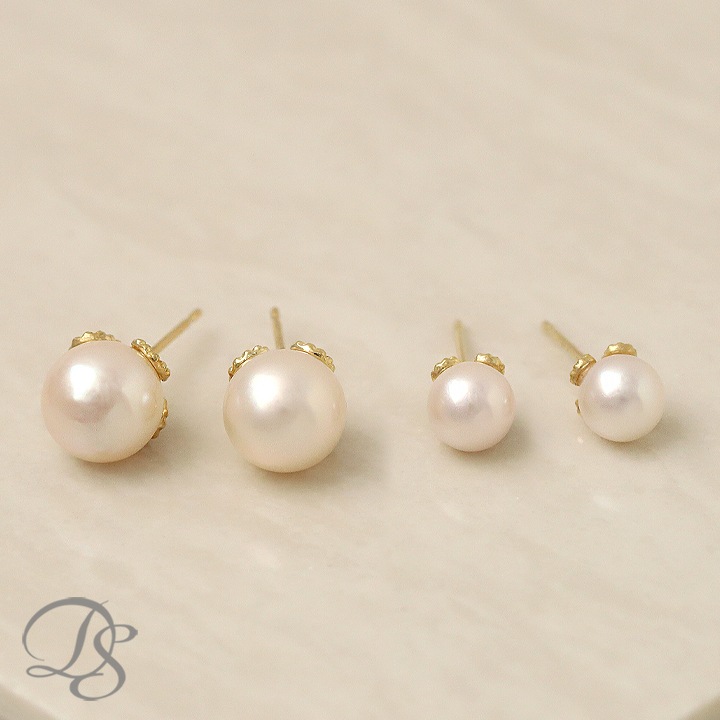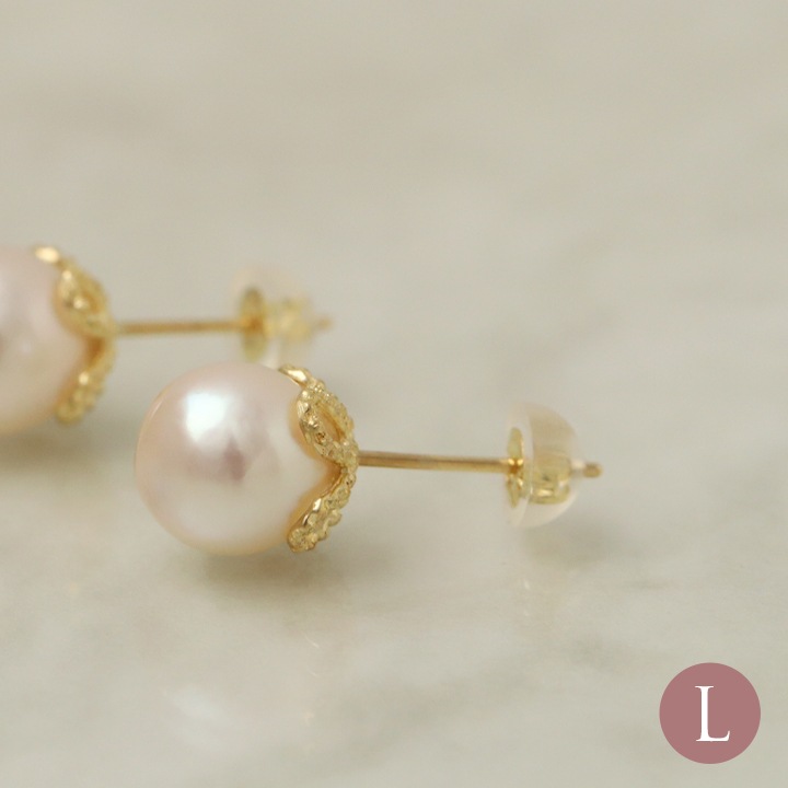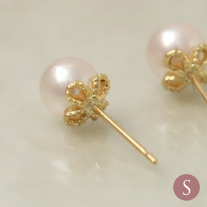 花びらのような石座が可愛い、本真珠アコヤパールピアス。