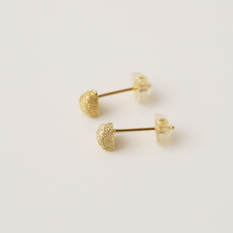 表面には当店オリジナル加工の、18金本来の輝きを生かした ”キラキラ”(ダイヤモンドダスト)加工を施し、光の加減でマットっぽく、またキラキラとゴージャスに輝く仕上げとなっております。