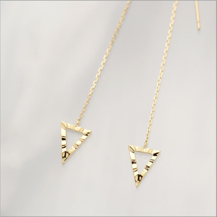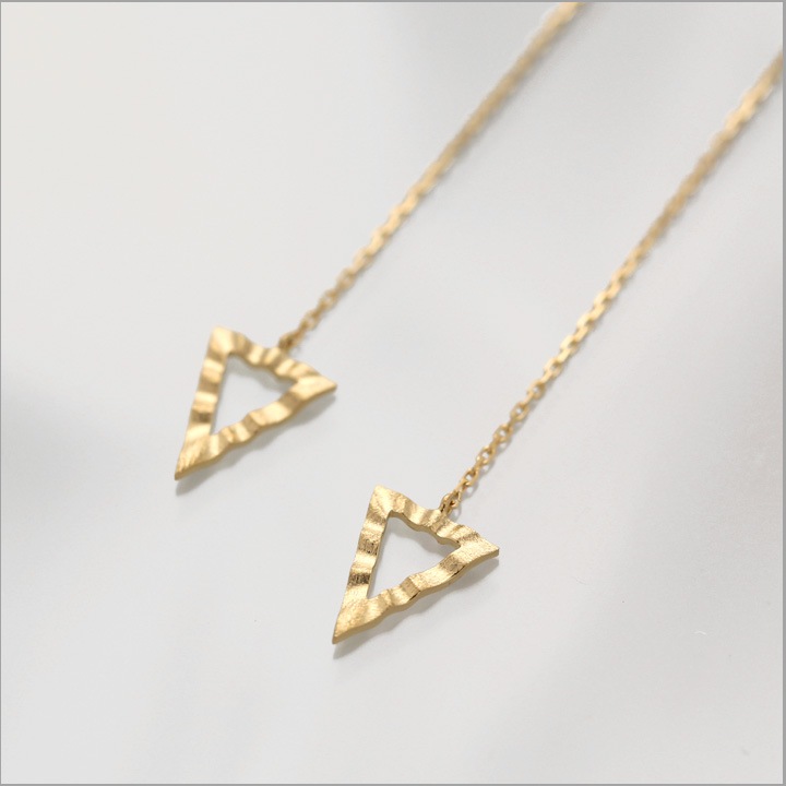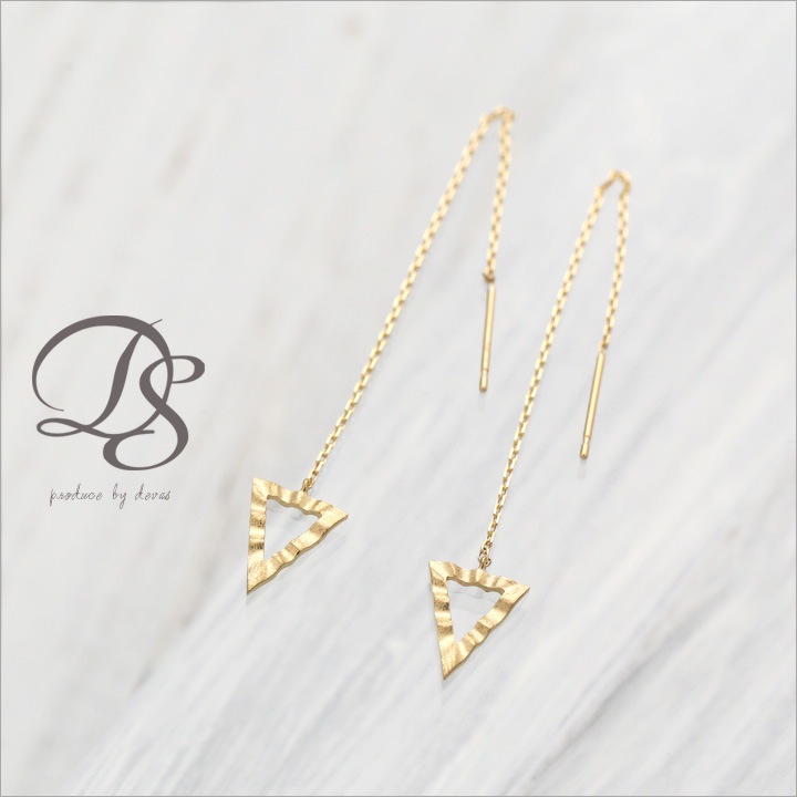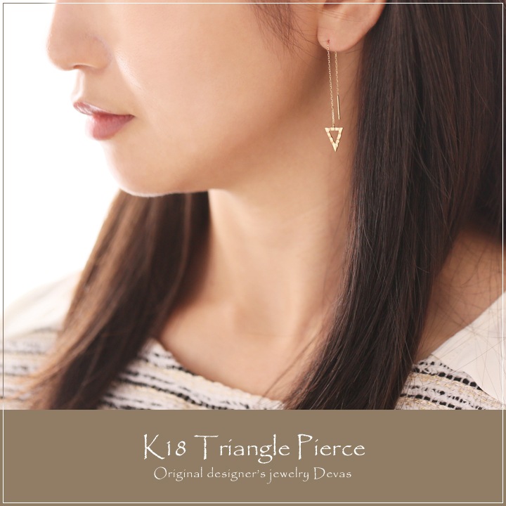 K18ゴールドの地金のみで作った、おしゃれなトライアングル(三角形)ピアス。