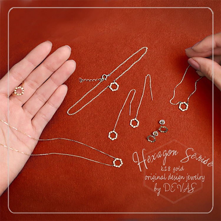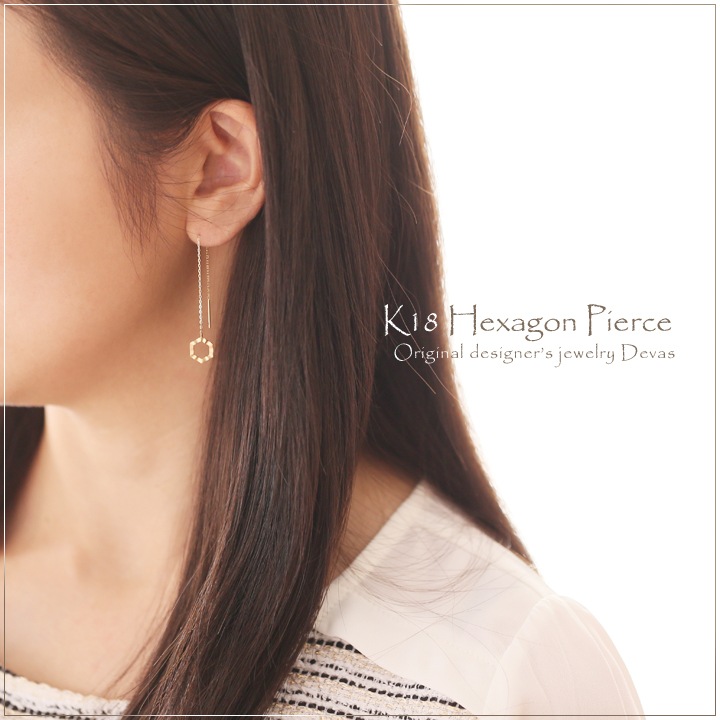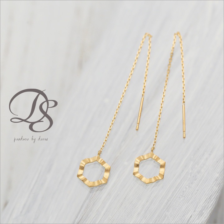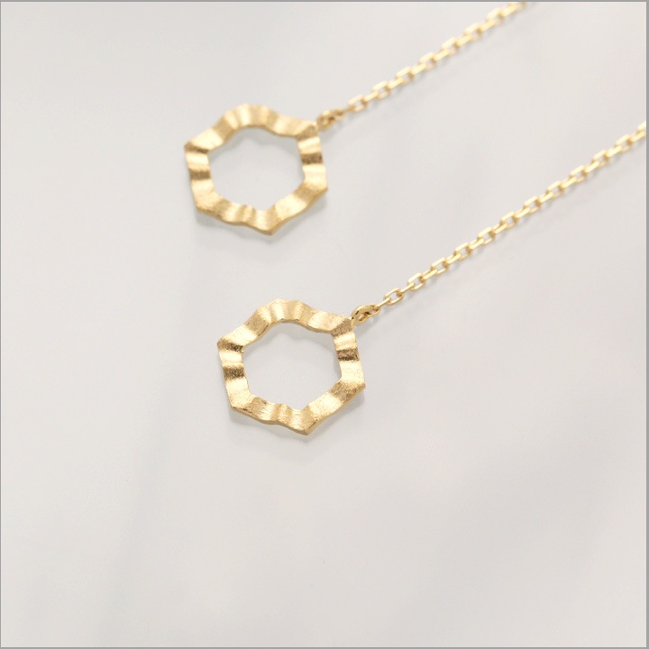 K18ゴールドの地金のみで作った、おしゃれなヘキサゴン(六角形)ピアス。