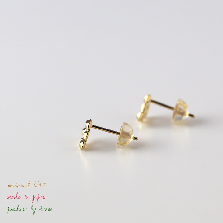 K18ゴールドの地金のみで、無機質な鉱物のようなイメージで、不規則に並ぶデザイン。