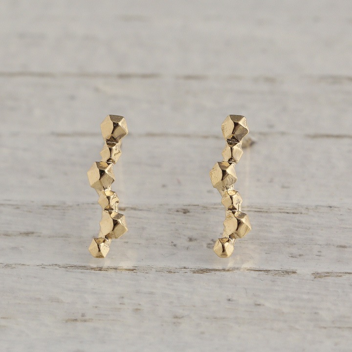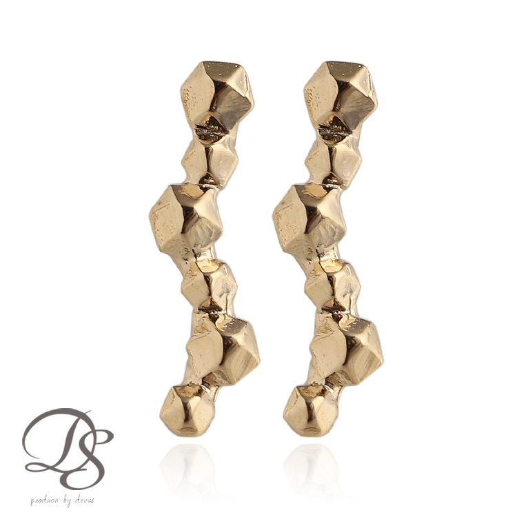ボコボコとした大小の鉱物を流れるような棒状でデザインした個性的なピアスです。