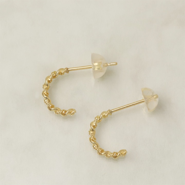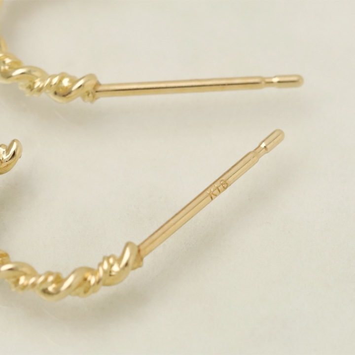 絶妙なねじれ具合が光の加減でキラキラと輝き、華奢なデザインながらも存在感を放つ。