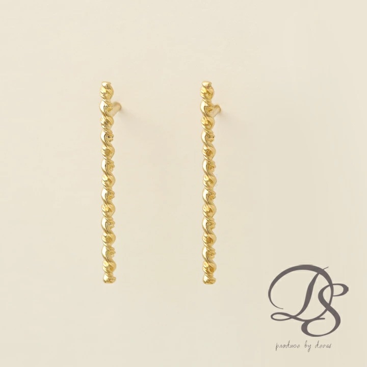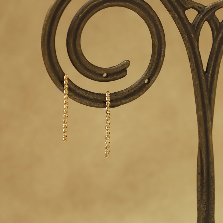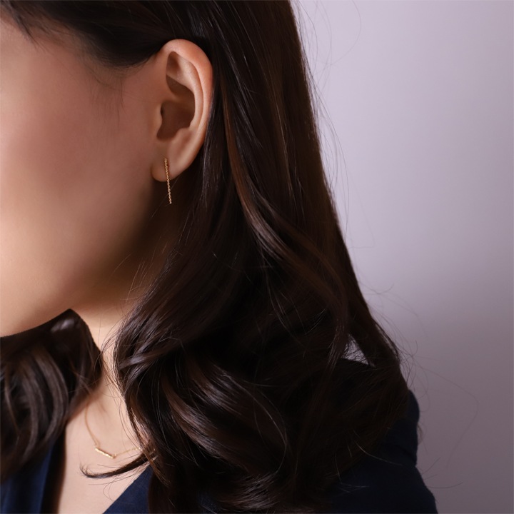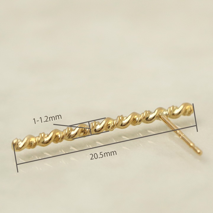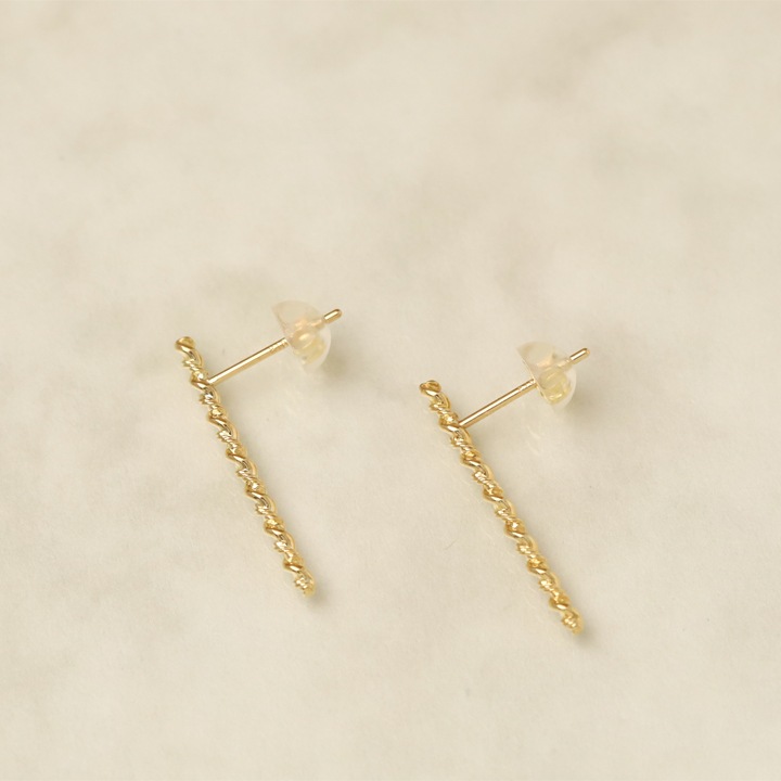 絶妙なねじれ具合が光の加減でキラキラと輝き、華奢なデザインながらも存在感を放つ。