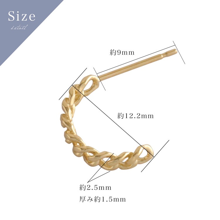 また、小ぶりなサイズ感でも上品かつ程よい抜け感と、地金本来の美しい輝きを引き出し、存在感が際立つデザインとなっております。