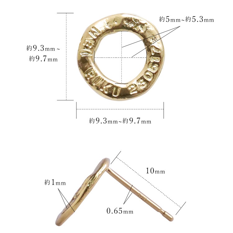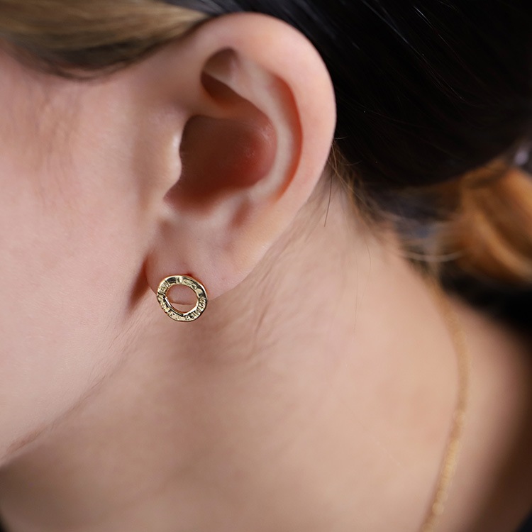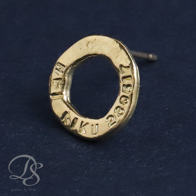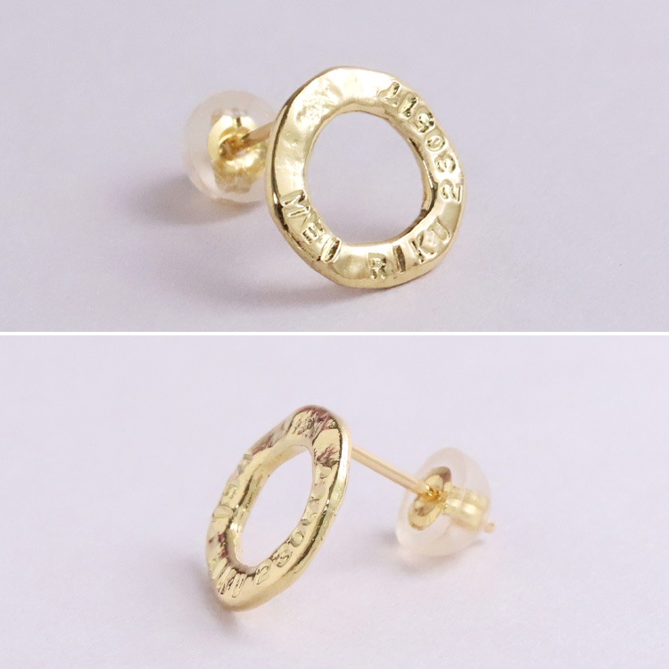 お好きな言葉を刻印できる、サークルモチーフの18金スタッズピアス。