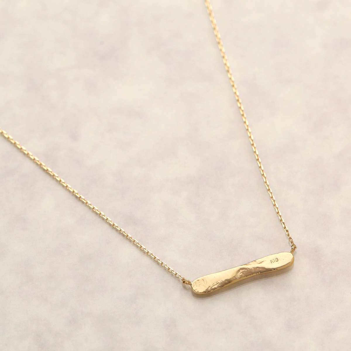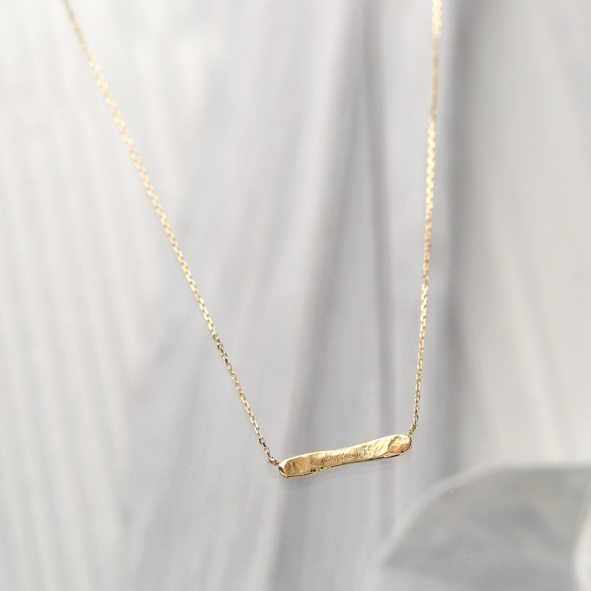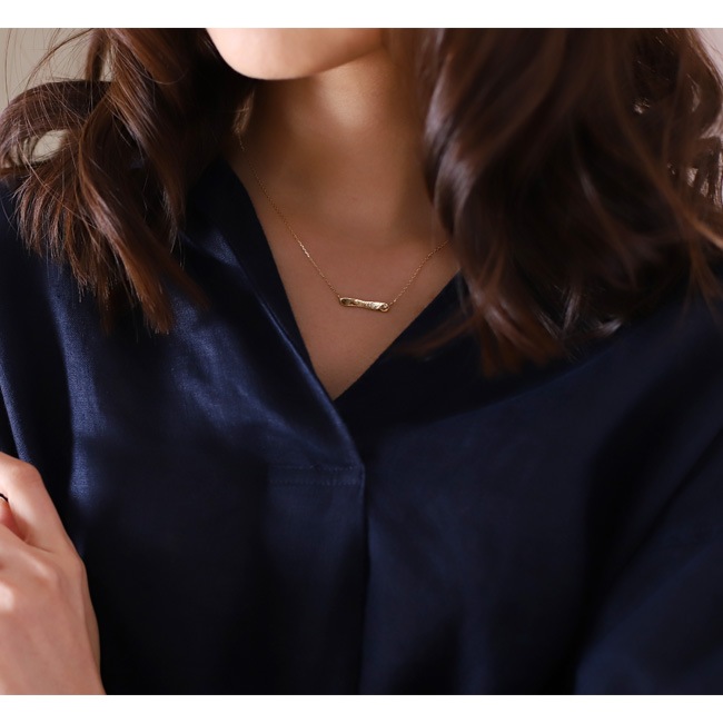 K18ゴールドの輝きを活かし、極力シンプルにデザインしたネームネックレス。