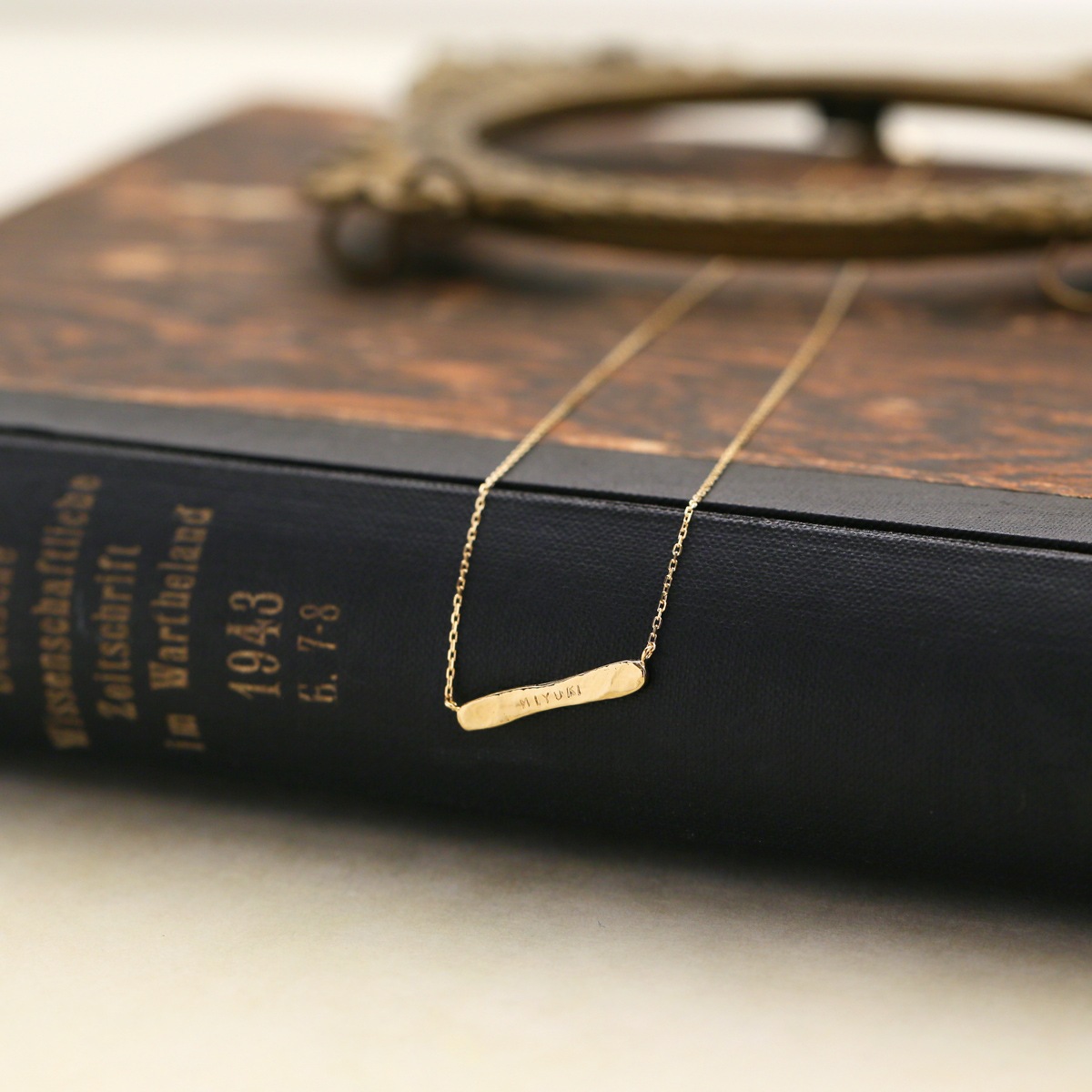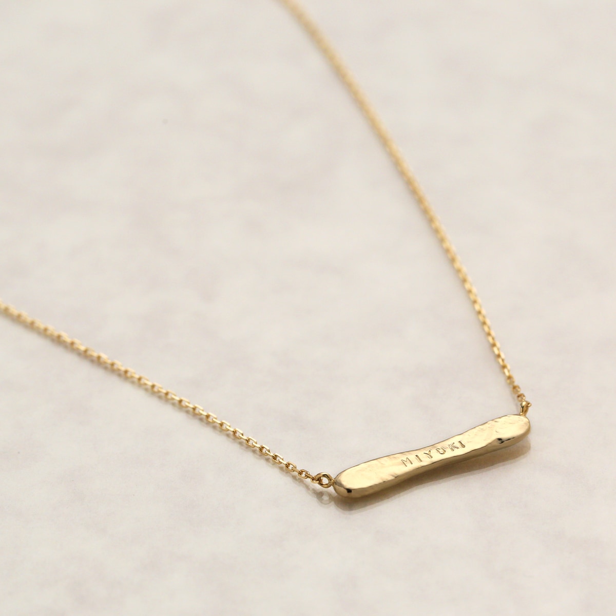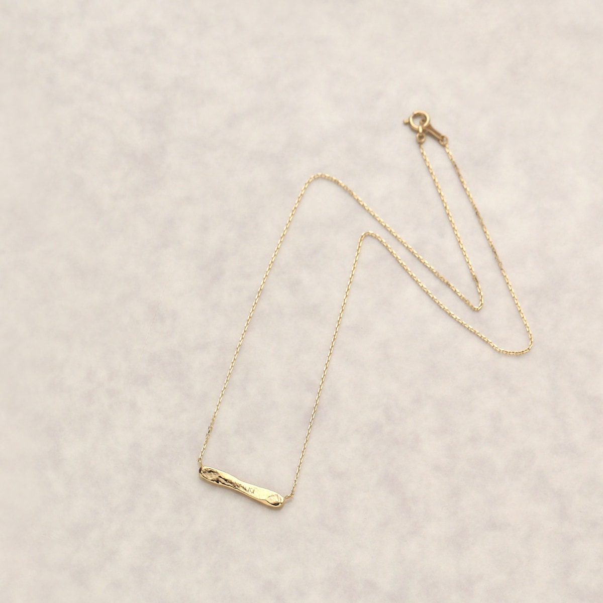 K18ゴールドの輝きを活かし、極力シンプルにデザインしたネームネックレス。